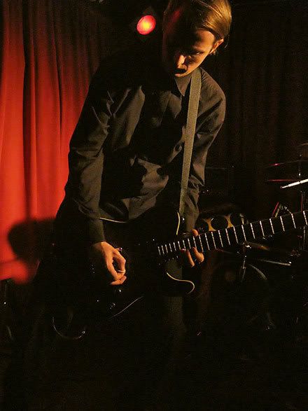 BLACKCHORDS (***) myspace :: Which brings us to our second act tonight. Seeing them on stage, I'm reminded of this hilarious live act I saw last year (let's for the sake of argument call them "The Captains Of Industry") and some timely advice I was given by an anonymous band member (who, let's for the sake of incrimination, we'll call "Mannix"). Before their show he warned me that the entire first half of their set would be "utter shite" (ie: it was fuck full of their slow songs), I should skip it and come back later for the vastly superior second half when they're busily ripping off Interpol (*cough* all jokes aside, they're awesome.. you should totally go see them!). Yup, if only someone gave me a similar warning about THIS band, this review here would've come out completely different. Blackchords. To their infinite credit they started off brilliantly and ENDED brilliantly. I hear elements of Sparta, Hard-Fi, The Editors and Franz Ferdinand here. There's a distinct, darkly driven rhythm that really nails it; even "semi acoustic" it's a mad buzz. But between these exceptional extremes (see the video you'll know what I'm on about) you're stuck with the sadsack middle section; where you'd much rather be off at the bar getting hideously drunk instead. Especially when your friends at said "bar" (hi Simone!) are busily sending you a string of SMS's reminding you just how much this band blows a goat and how you'd much rather be off drinking with them (I know.. don't remind me!). Still, maybe it boils down to personal preference. Maybe it's just how they've arranged the setlist. If you love Matchbox 20, Rob Thomas, Creed and Coldplay; if you LOVE a good "power ballad", there's plenty to love about Blackchords here. Clearly I don't know what the fuck I'm talking about.. I know! There IS an earnest delivery here, a heartfelt honest plea in the acoustic twang, it's powerful stuff, and in no way am I clawing my own face off (whilst attempting to take all these photos no less) wishing I was anywhere but here. Still if it helps, their lead singer Nick Milwright here DOES bear a striking resemblance to Charlie (aka: Dominic Monaghan) out of Lost, and I think we can ALL agree that Lost is freakingly awesome. No shit, how good is the fifth season!? how ridiculously badass is it? if you're downloading it like I am you'd know just what I'm on about. If you're still watching it on TV, it only gets better.. trust me! Yes I realise I'm laughably off track here.. and for good reason. Blackchords is a band you'd wanna appreciate with a short attention span. If you do, you'll dig 'em fierce. If not, blame Eddie Vedder for fucking it all up.