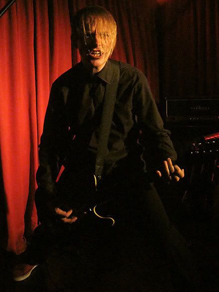 By the time I made the journey into the Eastend ghetto two hours later, I'm already three or four pints in and gargling (I like to thank the Yeah Yeah Yeahs and their new album "It's Blitz!" for getting me there in a suitably surreal fashion too). Which, if ever you've found yourself at the Crown & Anchor on a regular basis is the ONLY way to be. You really do NEED to be blitheringly incoherent to appreciate it here. I've seen this place sober, I've seen it during the day (even on a Monday!) and I've seen stains here that haunt me still. This may also be indirectly responsible for me missing the first band tonight, Saving Savanah, as I was much too busy dribbling shit with the former drummer (aka: Optimus Prime) from Tokyo City Sex Shooters outside (to notice they were ON the stage tonight). Or seeing just how many BBQ flavoured chips I could cram into my mouth all at once here, whilst posing for a photo with Charlie inside. Awesome! Yup, and if I'm the most comprehensive source of live music journalism in Adelaide? then clearly we're ALL screwed!